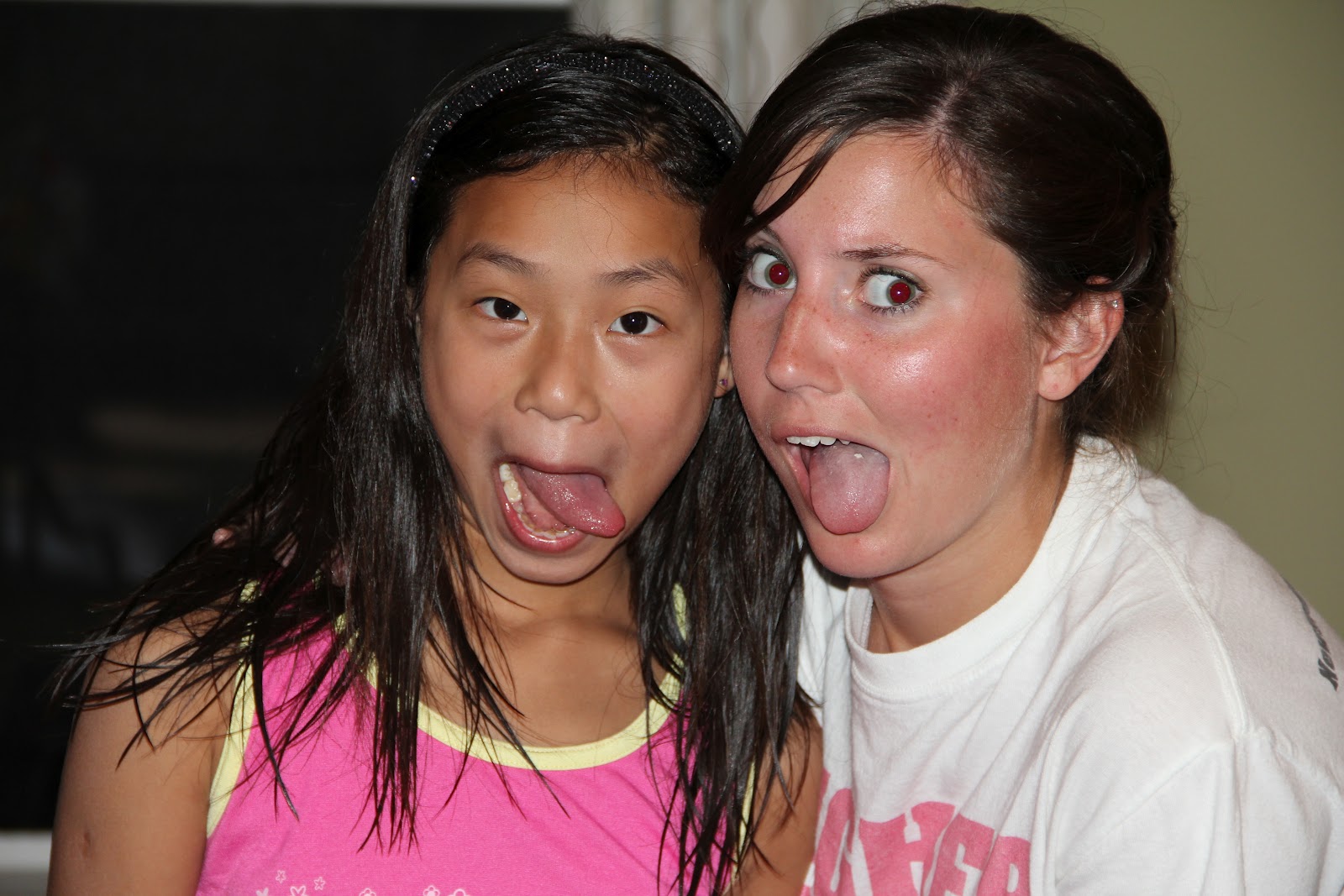 Maggie LOVES Tiff. She (and Hope) get so excited if they see Tiffs car is home. That means (most of the time) that Tiff is home. I love how excited they are to see Tiff. And I think Tiff loves it too. This photo was taken the other day. I told them to make "silly faces".